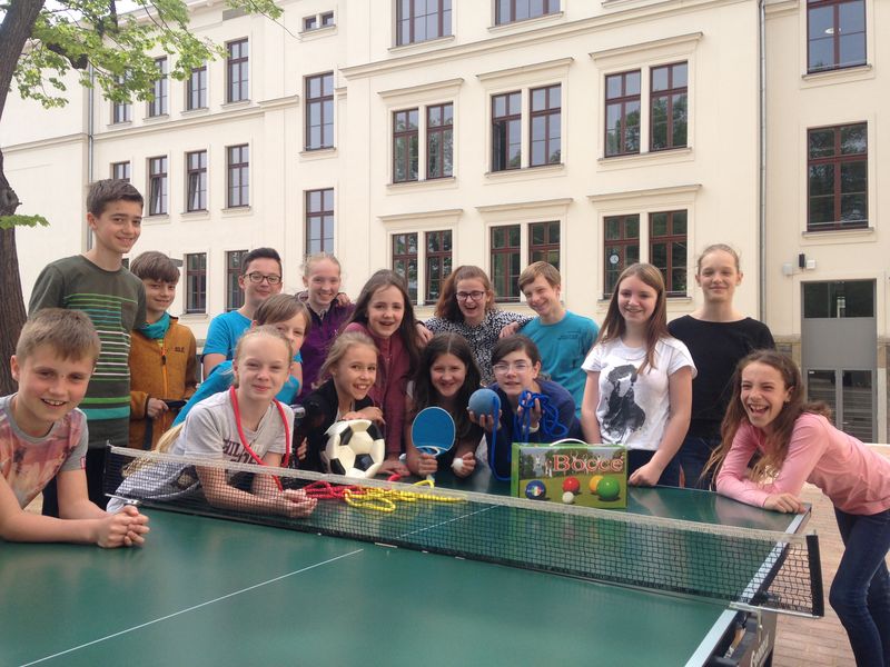 Zu jeder Hofpause habt ihr nun die Qual der Wahl zwischen Tischtennis, Basketball, Fußball, Drehkreisel, Boccia, Springseil oder Gummihixe. Die Ausgabe der Spielgeräte erfolgt jeden Tag durch ein Schülerratsmitglied (die Verantwortlichen für die Ausgabe findet ihr auch per Aushang neben dem Sekretariat).