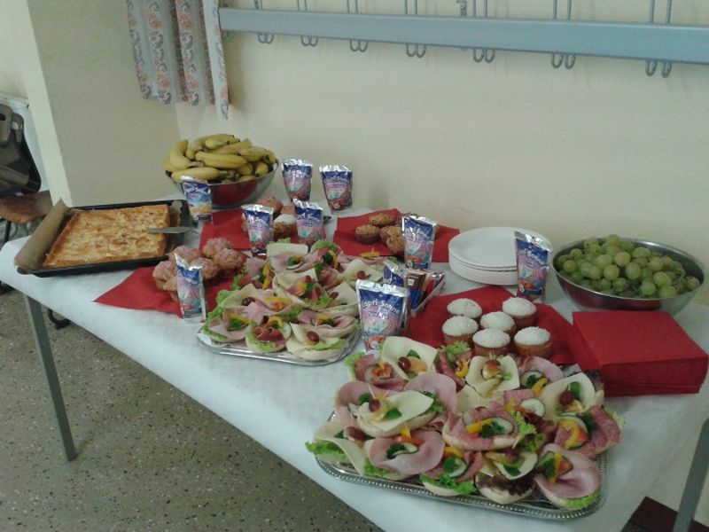 Am kleinen hausgemachten Buffet konnten sich alle 26 Teilnehmer an Erfrischungstränken, gesunden Vitaminen und feinen Leckereien stärken, um mit frischer Kraft ihre Schule in die Landesrunde der Mathematik-Olympiade zu bringen. Dank der guten Unterstützung des Hausmeisters, der Lehrer und vor allem der Leistung der Schüler, war auch diese 2. Stufe der Mathematik-Olympiade ein toller Erfolg für unsere Schule.