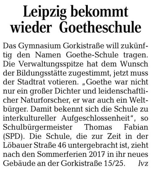 Dann hoffen wir mal, dass der Stadtrat dem Namen Goethe-Schule auch zustimmt.