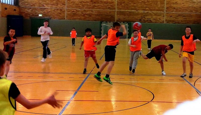 Am letzten Märztag diesen Jahres organisierten unser Sportlehrer Herr Kraus gemeinsam mit Herrn Schubert, Trainer beim SV Lok Leipzig Mitte, ein Hand-ballturnier. Die drei 5. Klassen gingen voller Elan ins Spiel und schenkten sich nichts. Dabei wurde fair und kameradschaftlich gekämpft. Und trotz aller Anstrengung stand der Spaß im Mittelpunkt. Die Zuschauer hatten auch ihre Freude und feuerten ihre Mitspieler an. Verdienter Sieger waren das Mixteam der Mädchen (5-1 5-2) bzw. die Jungen der 5-1. An dieser Stelle vielen Dank an alle Schüler für ihr großes Engagement.