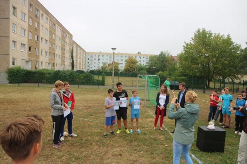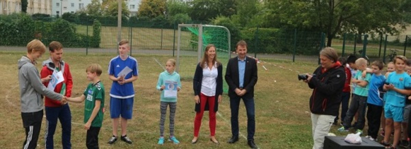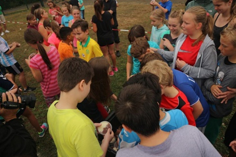 Nicht zuletzt dem Engagement unseres Fördervereins ist die Ausrichtung dieses erlebnisreichen Tages zu verdanken. Dieser stellte für unsere Schule die neuen Tore auf dem Sportplatz zu Verfügung, die mit großem Beifall der Kinder eingeweiht wurden. Darüber hinaus sorgte der Förderverein am Ende des sportlichen Ereignisses für eine süß-kalte Überraschung für alle Beteiligten.