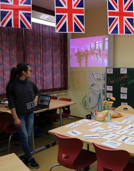 In den Englisch- und BILI-Raum kamen die Kinder mit ihren Eltern vor allem, um einige Details zum bilingualen Unterricht in Erfahrung zu bringen. Eine große Unterstützung waren uns Lehrern dabei drei BILI-Schülerinnen der Klasse 7-1, die den Eltern erklärten, wie der bilinguale Unterricht in Form von Modulen ab der Klasse 7 funktioniert.