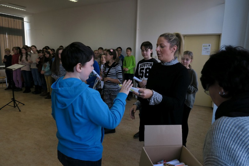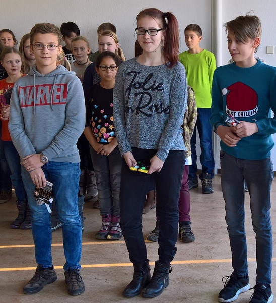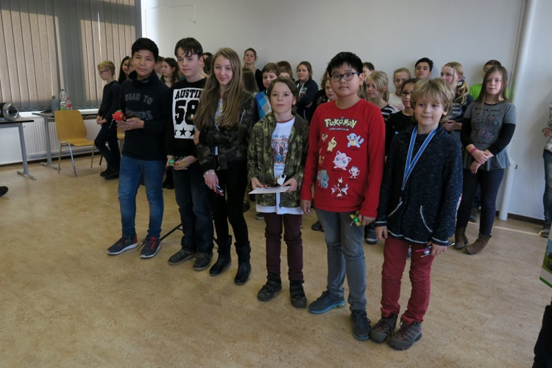 Doch nicht nur die besten Leseratten konnten sich über Preise und den ausgiebigen Beifall des Publikums freuen, auch die Matheasse, die die ersten drei Plätze der 2. Stufe der Mathematikolympiade belegten, wurden von den Mathematiklehrern für ihre ausgezeichneten Leistungen gewürdigt und mit kleinen Preisen beschenkt.