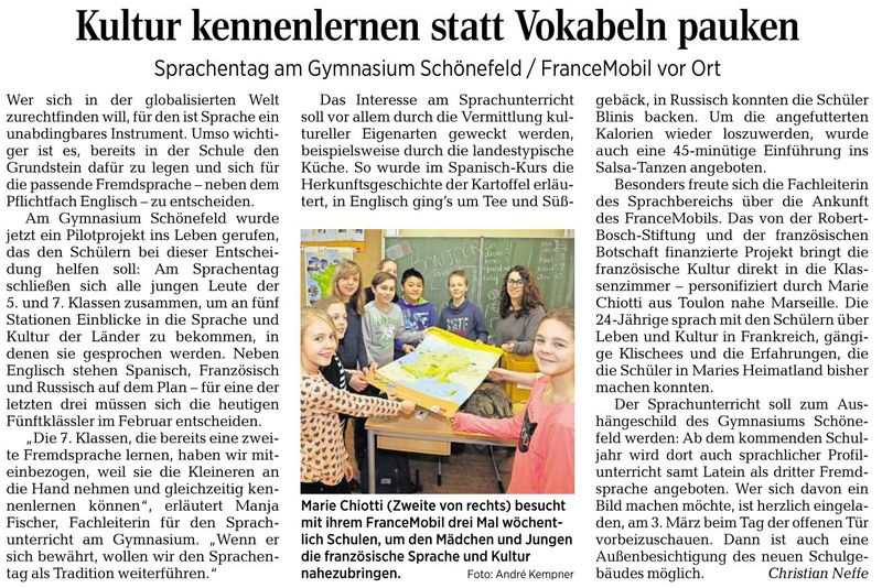 Dazu eingeladen waren das FranceMobil und die LVZ (siehe Artikel) rechts.