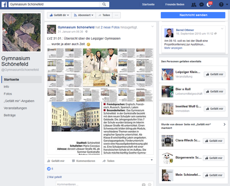 In regelmäßigen Abständen wird von dem Autoren-Team der Schönefelder Bürger über den Fortgang der Baustelle berichtet. Zugleich werden aber auch kritische Fragen rund um Bauplanung gestellt und öffentlich diskutiert sowie Informationen über das Schulleben des seit 01.08.2016 eigenständigen Gymnasiums im Interim in der Löbauer Straße geteilt. Wer die Seite noch nicht für sich entdeckt hat schaut vielleicht einfach mal vorbei? Wir freuen uns jedenfalls über das rege Interesse an unserer Schule!