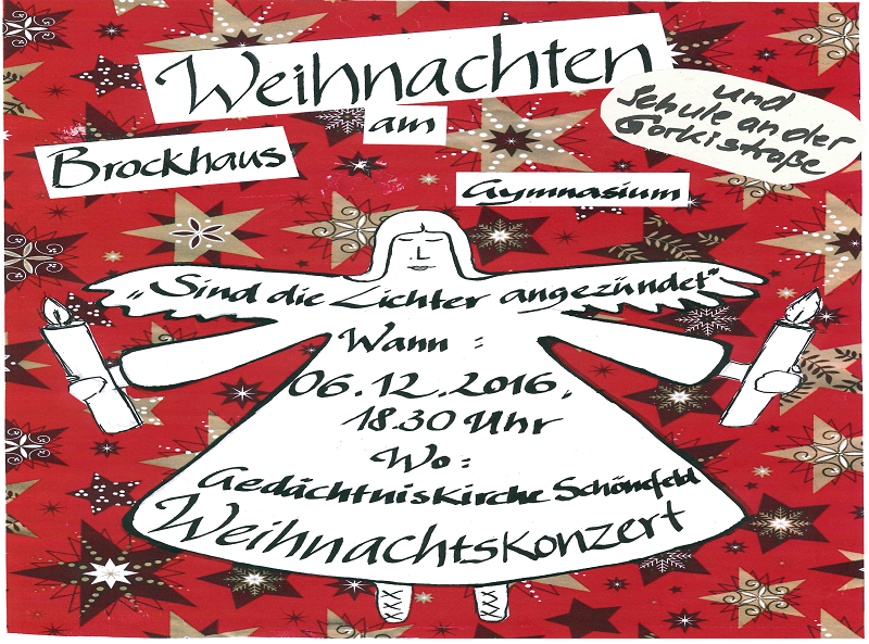 Wir möchten Sie an dieser Stelle herzlich zum Weihnachtskonzert des F.-A.-Brockhaus Gymnasiums und des Gymnasiums an der Gorkistraße einladen.