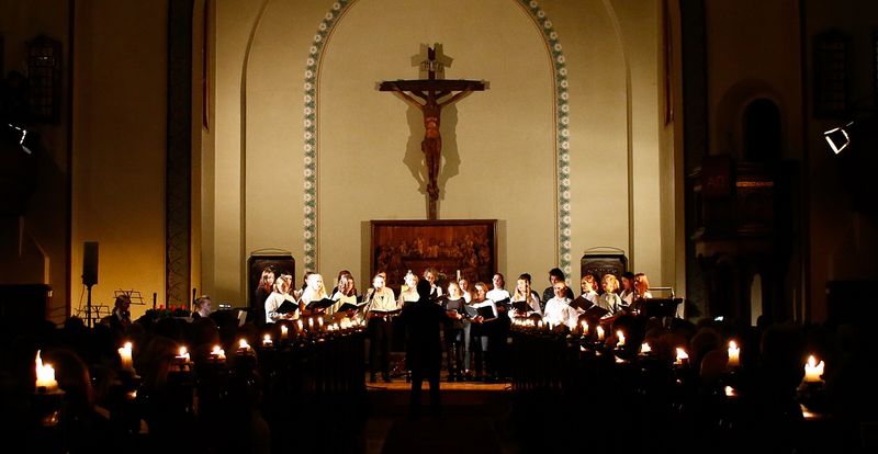 Als die Kirche sich mehr und mehr füllte, stieg die Aufregung der Akteure immer weiter an. Erst als das Konzert mit einem instrumentalen Stück eröffnet wurde, ging die Anspannung allmählich in Freude über. Nachdem die Moderatorinnen Martha und Frida aus der 7/3 sowie unser Schulleiter Herr Loibl eröffnet hatten, begannen die jüngsten Mitglieder unserer Schule mit dem Klassensingen der fünften Klassen. Anschließend hörten wir einige Einzelstücke (sogar von ein paar Lehrer*innen), Duette und ein selbstverfasstes Weihnachtsgedicht von Liana Idris, Kl. 10/2. Diese festlichen Klänge rührten das Publikum in der mit Kerzen erleuchteten Kirche. Wieder einmal staunten die Gäste über das große Talent der Solist*innenen. Danach erfreute sich das "professionell klatschende Publikum" (O.-ton Herr Bugiel) an der Schulband.