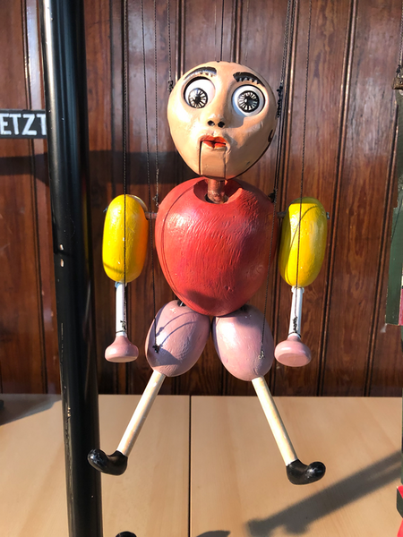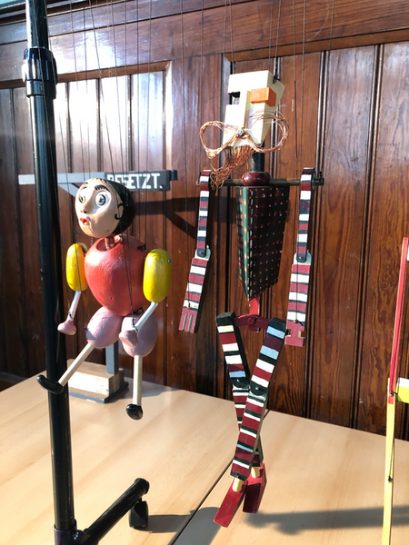 In abwechslungsreichen 40 Minuten hat er die Marionetten vorgestellt und dabei Gestaltungskonzeptionen des BAUHAUSES erläutert, Anekdoten zu den Puppen erzählt sowie das ca. 20-minütige Stück „Die Abenteuer des kleinen Buckligen“ vorgespielt.