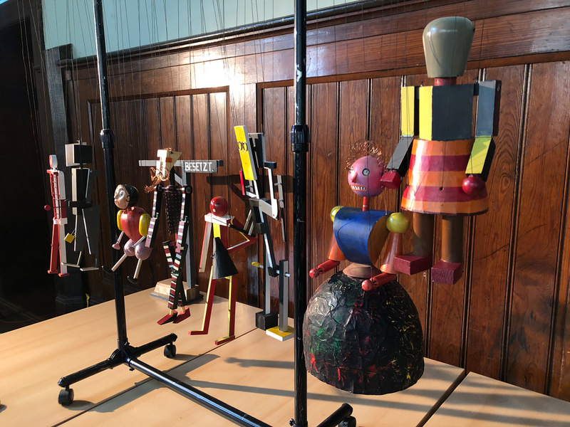 Der Puppenspieler und Dramaturg Christian Fuchs hat nun die Marionetten, die er nach den originalen Figuren hat nachbauen lassen, zum Leben erweckt und zeigt die Rekonstruktion dieses Bauhaus-Stückes als Lecture Performance (Verknüpfung von Vortrag und Aufführung) … auch an unserer Schule.