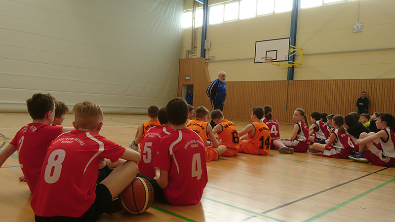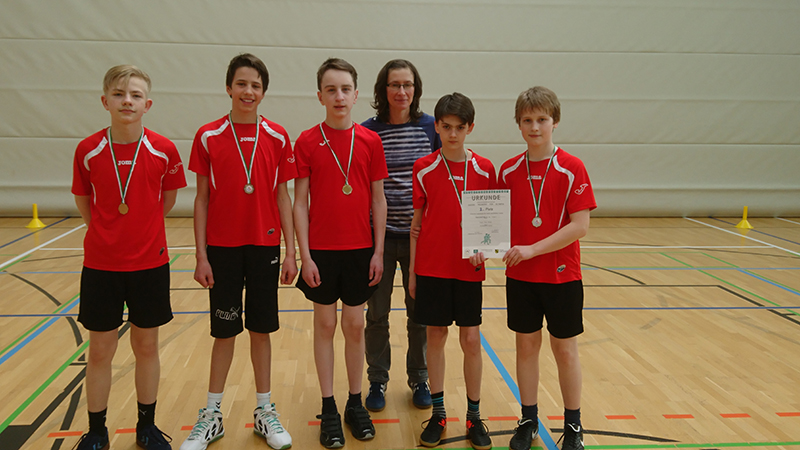Am 21.3.2018 warteten auf die Jungs der Wettkampfklasse IV im Basketball alle Vorrundensieger ihrer Bereiche. Vor einer Woche hatten wir den 1. Platz aller Leipziger Schulen errungen und waren nun gespannt, mit welchen Teams wir es in Markkleeberg zu tun bekommen sollten. Ein Team war nicht angereist, so dass wir das Turnier mit dem Rudolf-Hildebrand-Gymnasium aus Markkleeberg, mit dem Evangelischen Schulzentrum Großbardau und der Oberschule Böhlen bestreiten sollten. Der erste richtig große Brocken wartete gleich im ersten Spiel auf uns - Markkleeberg!! Dorian prophezeite uns schon vorher, dass die Jungs vom USC richtig gut sind. Wir versuchten uns dennoch richtig zu motivieren und konnten immerhin mit einem 7:26 gegenhalten. Im zweiten Spiel ging es dann gegen Böhlen. Nachdem wir uns durch eine recht ausgeglichene Startphase gespielt hatten, lief es dann zunehmend besser und das Selbstvertrauen war zurück. So konnten wir unseren ersten Sieg verbuchen, das Spiel endete 14:4. Im letzten Spiel gegen Großbardau wollten wir nochmal alles geben, wartete doch bei einem Sieg der Silberrang auf uns! Hatte Großbardau der RHS das Leben noch recht schwer gemacht und „nur“ 17 Punkte zugelassen, kratzen wir an der magischen „33“, was gleichbedeutend mit einem K.O. gewesen wäre und einen vorzeitigen Spielabbruch bedeutet hätte. Doch auch Dorians grandioser Lauf im letzten Spiel konnte diesen Abschluss nicht herbeiführen. Aber das Ergebnis von 30:4 war mehr als deutlich und so konnten wir uns über einen eindeutigen 2. Platz freuen.