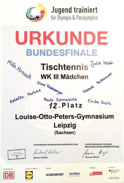 An dieser Stelle möchte ich hervorheben, dass eine Teilnahme auf Bundesebene keine Selbstverständlichkeit und das Erreichen des Bundesfinales häufig den Sportschulen vorbehalten ist.