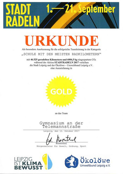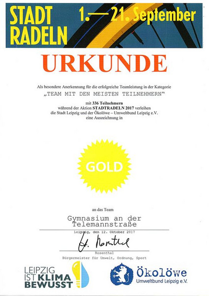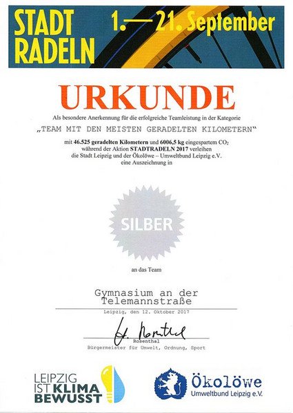 Am Montag, dem 6. November 2017, fand am Gymnasium an der Telemannstraße die feierliche Schuleinweihung statt. Es kamen viele prominente Gäste. Am Eingang wurden sie freudig von einigen Schülerinnen und Schülern der sechsten und siebten Klassen empfangen und anschließend zu den mit Helium befüllten Luftballons geführt. Dort wurden sie gebeten ihre Wünsche für die Schule, Schüler und Lehrer auf kleine, an den Heliumluftballons befestigten Zettel zu schreiben. Pünktlich um 10:30 Uhr saßen alle Gäste, SchülerInnen, LehrerInnen und Reporter in der Aula und lauschten gebannt dem ersten Beitrag der Veranstaltung. Es sang die Klasse 5\3 mit der Begleitung am Klavier von Frau Landes das Lied „Alles muss klein beginnen“ , von Gerhardt Schöne. Dazu dachten sie sich noch eine weitere Strophe zum Anlass der Schuleinweihung aus. Der Moderator für diesen Vormittag war Professor Dr. Fabian. Er war es auch der nun den Leipziger Oberbürgermeister Burkhard Jung zu seiner Rede bat. Er hat einen ganz besonderen Wunsch für die Schule: „Die Schüler sollen an dieser Schule leben und lernen können“, so sagte er. Außerdem dankte er allen, die an dem Bau dieser modernen und freundlichen Schule mitgewirkt haben. Danach hielt Herr Berger, Leiter der Sächsischen Bildungsagentur Leipzig, seine Rede über fitte und junge Lehrer. Er lobte auch die Höflichkeit der SchülerInnen, meint die Lehrer haben sie sehr gut im Griff und findet die Fachräume sehr praktisch ausgestattet. Außerdem lobt er noch einmal die moderne Schule.