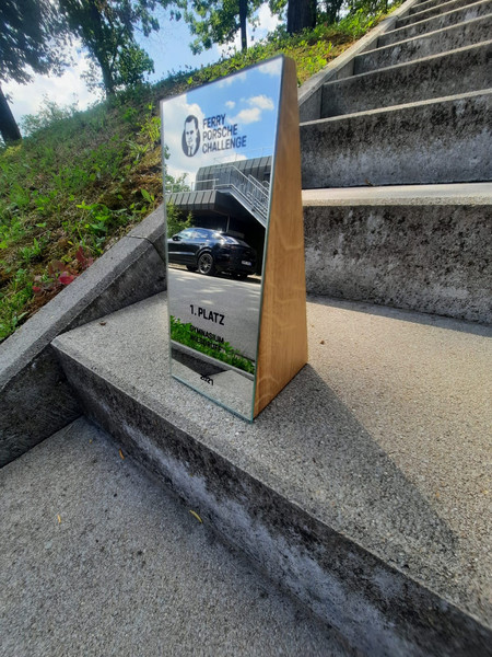 Gut ausgeschlafen ging es am Montagmorgen auf ins Kommunikationsforum der Porsche-AG. Wir wurden freundlich begrüßt und in die Abläufe eingewiesen. Schnell bemerkten wir, dass nur drei Schulen im Studio vertreten waren. Sollte das wirklich bedeuten, dass wir zu den Hauptgewinnern gehören? So richtig wollten wir uns diesen Gedanken noch nicht erlauben. Herr Dr. Rudolph (Vorstandsvorsitzender der Ferry-Porsche-Stiftung) eröffnete die Preisverleihung und begrüßte alle Schulen, die digital in die Veranstaltung zugeschaltet waren. Wir freuten uns sehr über die Aufnahmen aus der Aula unseres Gymnasiums - alle waren dabei und fieberten mit. Einfach großartig! Dann ging es auch schon los - die acht dritten Plätze wurden vergeben. Wir waren nicht dabei. Auch nicht, als im Anschluss sechs zweite Plätze geehrt worden. Es blieben noch die Sonderpreise oder einer der drei begehrten Hauptpreise. Schließlich waren auch die Preisträger der Sonderpreise benannt – auch hier viel unser Name nicht. Langsam fingen wir an, an den ganz großen Erfolg zu glauben. Der erste Platz war noch zu vergeben und dann passierte es: „GYMNASIUM WILSDRUFF mit dem Projekt CampusCreators Wilsdruff!“ Wir hatten es geschafft!