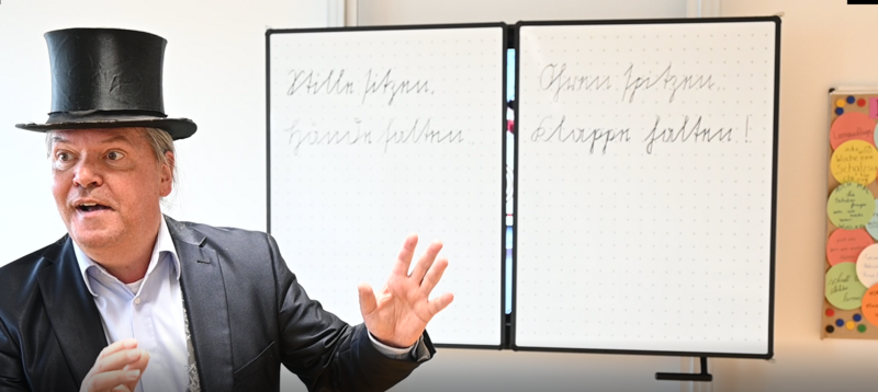 Daheim in Wilsdruff hieß es nun, die Aula zu schmücken, die Technik vorzubereiten und alle Mitglieder unserer Schulgemeinschaft am Montagmorgen pünktlich 10.30 Uhr zu versammeln. Frau Horlacher, Frau Fischer und Herr Schlönvogt übernahmen das WarmingUp - vielleicht eher das CoolingDown - in Vorbereitung auf die Live-Übertragung. Uns allen wurde nochmals bewusst, welch enorme Arbeit durch Lehrende, engagierte Eltern und Schülerinnen im Vorfeld geleistet wurde. Alle Beteiligten des Orga-Teams waren anwesend, als die Live-Schaltung nach Stuttgart aufgebaut wurde.