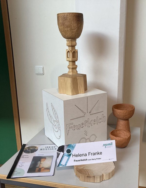 Noch vor den Sommerferien konnte Helena Franke ihr „Meisterstück“ einreichen und ihre Prüfung zur „Juniormeisterin ablegen. Helena besucht die 9. Klasse des Gymnasium Wilsdruff und nahm nun erfolgreich am Projekt „Juniormeister“ der Handwerkskammer Dresden teil. Ihr Meisterstück: der Feuerkelch von Harry Potter.