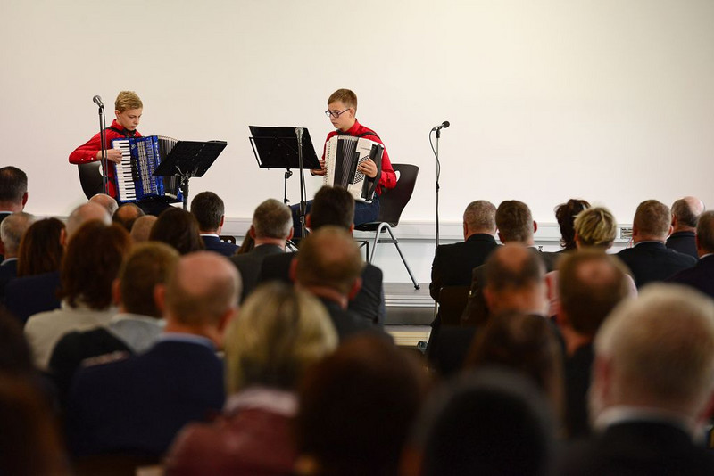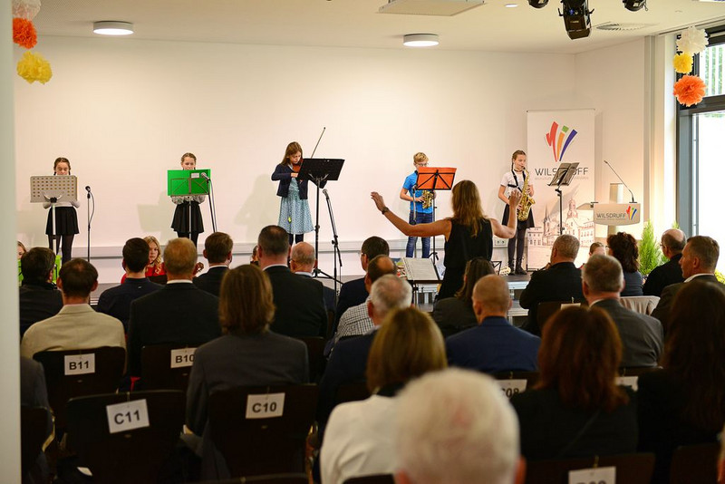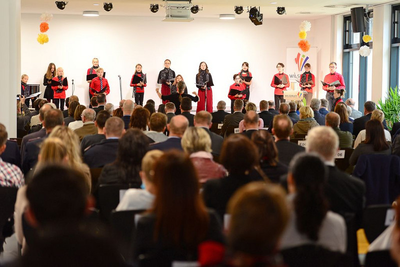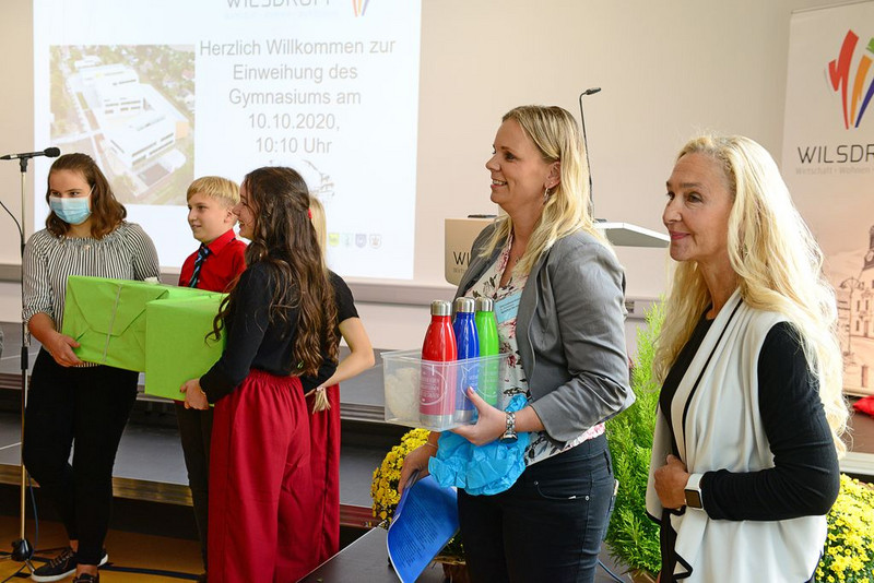 Der Stolz und die Freude über die erfolgreiche Einweihung des Schulneubaus prägte die Festveranstaltung. Zahlreiche Gäste waren der Einladung gefolgt. Herr Staatsminister Prof. Dr. Roland Wöller und Herr Landrat Michael Geisler würdigten in ihren Grußworten die Leistungen aller Beteiligten und erinnerten daran, dass es sich beim Bau des Gymnasiums in Wilsdruff um den ersten Neubau eines Gymnasiums im ländlichen Raum des Freistaates Sachsen handelt. Herr Pfarrer Weinhold brachte seinen Optimismus und seine Hoffnung für eine erfolgreiche Schulentwicklung zum Ausdruck. Frau Teichmann, die Elternratsvorsitzende des Gymnasiums Wilsdruff, ließ in ihrer Rede die vergangenen Jahre Revue passieren - beginnend bei den ersten Treffen interessierter Eltern bis hin zur Schilderung der Umzugswanderung vom Standort Freital-Kleinnaundorf nach Wilsdruff. Gemeinsam mit der Vorsitzenden des Fördervereins, Frau Lindner-Drews, übergab sie Geschenke des Fördervereins an die überraschten Kinder. Nach der symbolischen Schlüsselübergabe durch den Architekten, Herrn Uwe Schulze, an die Schulleiterin Frau Katja Laetsch stellte diese in ihrer abschließenden Rede das Potenzial des Gebäudes für die pädagogische Arbeit und die Umsetzung der Visionen der Schulgemeinschaft heraus. Abschließend bedankte sie sich bei der Stadt Wilsdruff und ihren Entscheidungsträgern, den Mitgliedern des Stadtrates und den Verantwortlichen in der Stadtverwaltung, für die hervorragenden Lernbedingungen im neuen Schulgebäude.