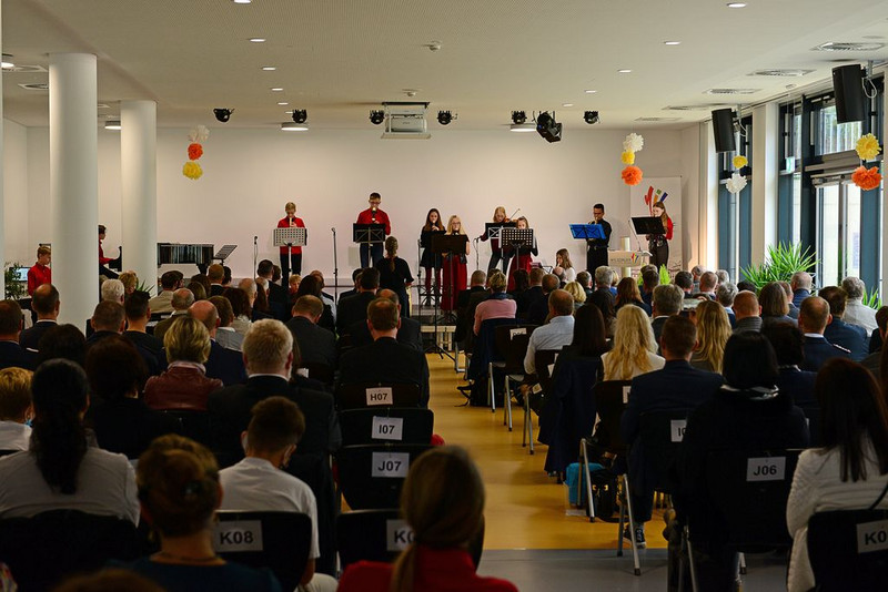 Genau 2585 Tage hat es vom Grundsatzbeschluss am 12.09.2013 zum Bau eines Gymnasiums in Wilsdruff bis zu dessen Einweihung gedauert. Genug Zeit also, um ordentlich Vorfreude auf den besonderen Tag zu entwickeln. Am 10.10.2020 um 10.10 Uhr war es dann endlich so weit. Nachdem uns der Chor mit dem Titel „An Tagen wie diesen“ von den Toten Hosen einen passenden musikalischen Auftakt bereitet hatte, begrüßte der Bürgermeister, Herr Ralf Rother, die geladenen Gäste zur Festveranstaltung. Er klärte diese gleich zu Beginn über die Besonderheit des gewählten Einweihungsdatums auf: Vor 110 Jahren - im Jahr 1910 - wurde, ebenfalls am 10.10., die Oberschule Wilsdruff eingeweiht. Eine Gemeinsamkeit, die symbolisch für die gemeinsamen Vorhaben auf dem Wilsdruffer Campus stehen könnte.