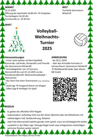 Das traditionelle Volleyball-Weihnachtsturnier des Gymnasiums Wilsdruff steht wieder vor der Tür! Am 12. Dezember 2025 öffnet die Turnhalle des Gymnasiums um 16:00 Uhr ihre Türen, bevor es ab 16:20 Uhr mit spannenden Spielen losgeht.