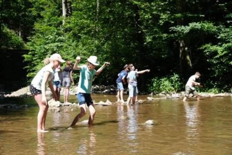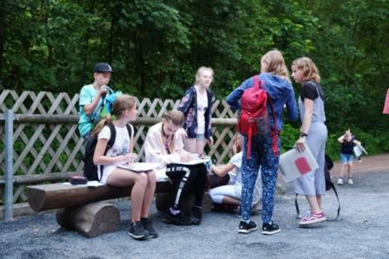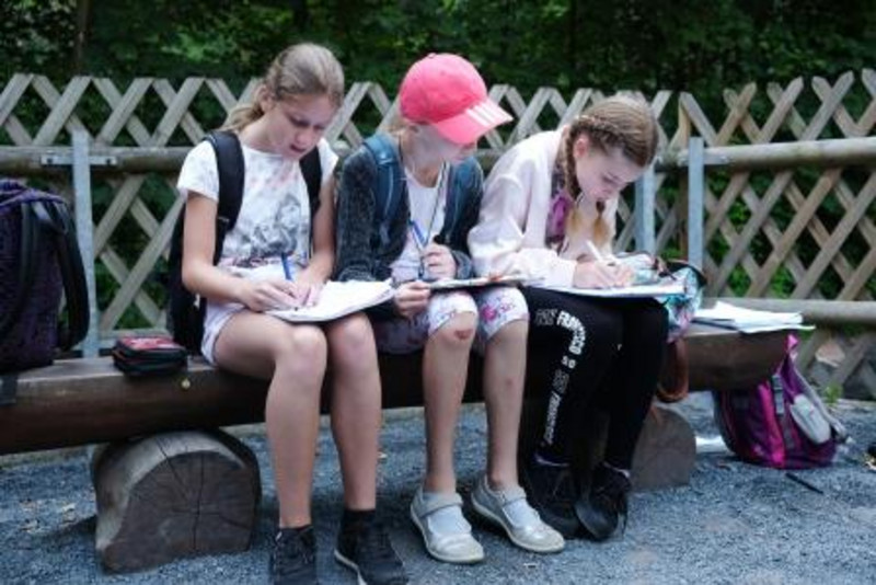 In der Woche vom 24.-28.06.2019 erkunden unsere drei 5. Klassen im Rahmen ihrer Fachexkursion Geographie eigenständig den Rabenauer Grund in Freital. Ausgerüstet mit einem reichhaltigen Frühstück, mit Karte, Kompass, Fotoapparat und Schrittzähler machen sie sich in Kleingruppen auf den Weg. Unterwegs arbeiten sie an sechs Stationen, die ihnen Gelegenheit geben, die vielfältigen Auswirkungen der Roten Weißeritz zu erleben. Zwischen Nadelöhr und Nixentump wird skizziert, fotografiert, gelesen und geschrieben. Es werden Temperaturen in Luft, Boden und Wasser gemessen. Dazwischen werden Steine beräumt, um dort Fließgeschwindigkeiten messen und errechnen zu können, wo am Nachmittag kleine Kinder mit ihren Eltern baden und Staudämme bauen. Steine werden gesammelt und identifiziert - und dann endlich der herrliche Rastplatz erreicht. Die Füße ins Wasser, die Brotbüchse ausgepackt und noch ein wenig den Schultag in der Natur genossen. So könnte es öfter sein.