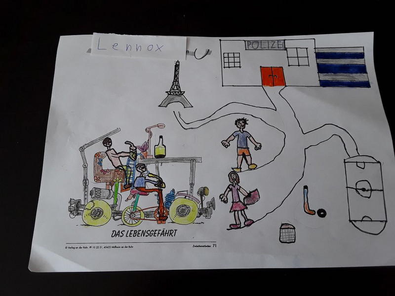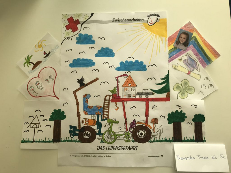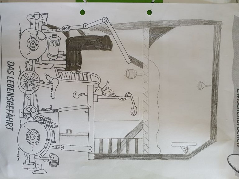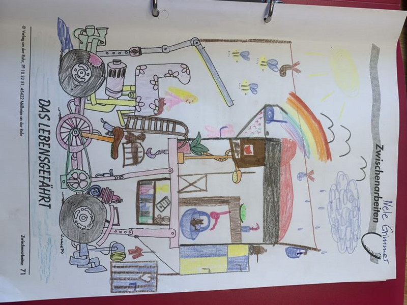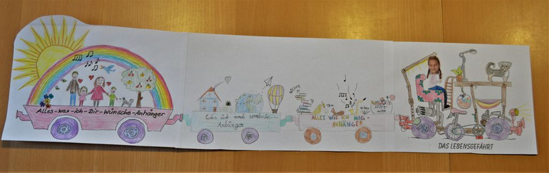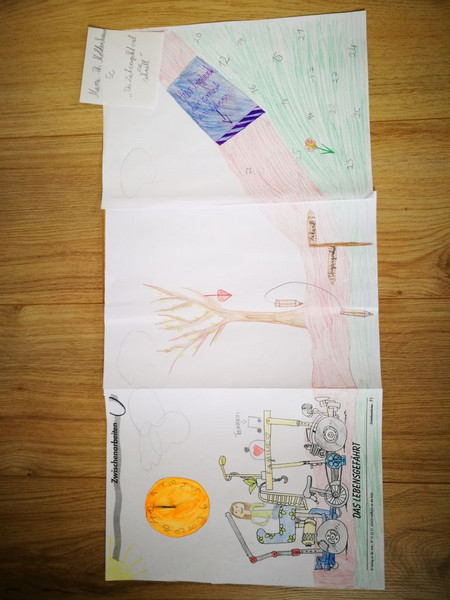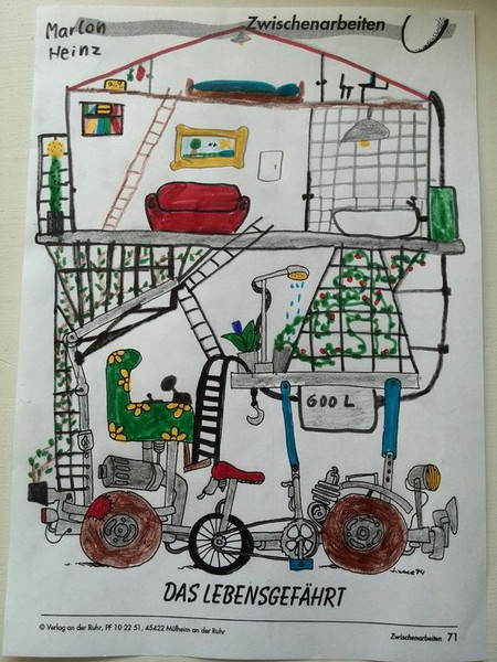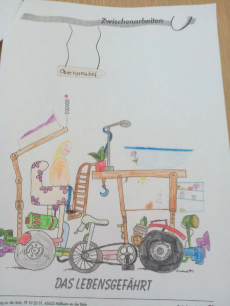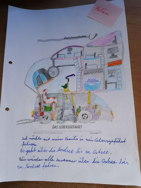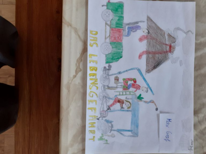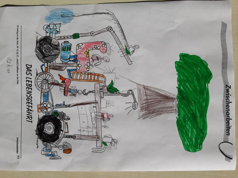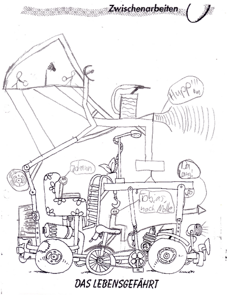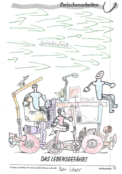 Setzt eine vorgegebene Zeichnung fort mit folgenden Fragen im Hinterkopf. Wir alle "fahren" gerade durch große Veränderungen. Überlege dir, was du dir unter einem "Lebensgefährt" vorstellst.