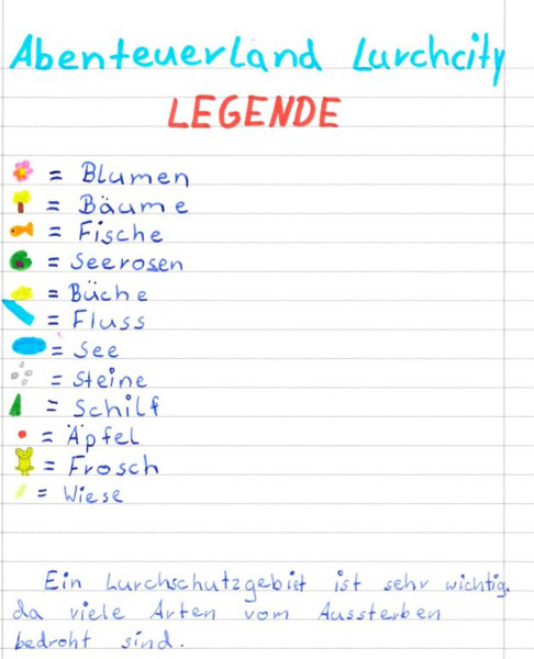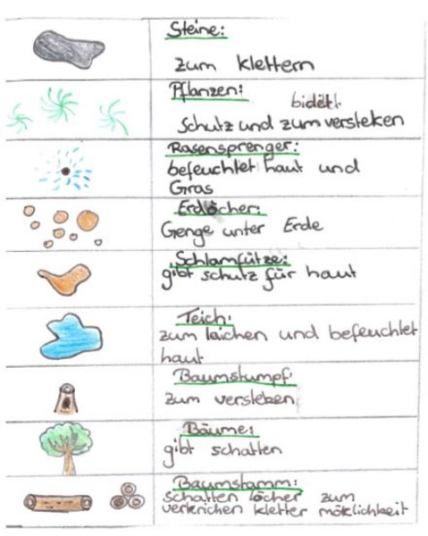 Unsere Schulgemeinschaft hat sich für ein Lurch-Paradies entschieden. Diese Ausarbeitung dient nun als Grundlage für unser Vorhaben, ein Feucht-Biotop anzulegen. Für die zweite Phase brauchen wir engagierte Schülerinnen und Schüler, die die Umsetzung des Projektes planen und durchführen wollen. Tragt euch bei Interesse in die Liste an der Pinnwand ein. Alles Genauere besprechen wir in der entstehenden Gruppe.