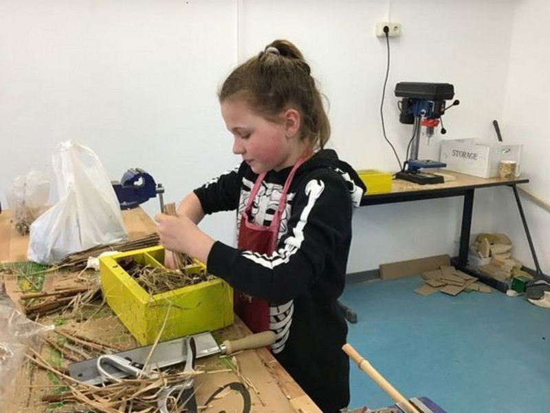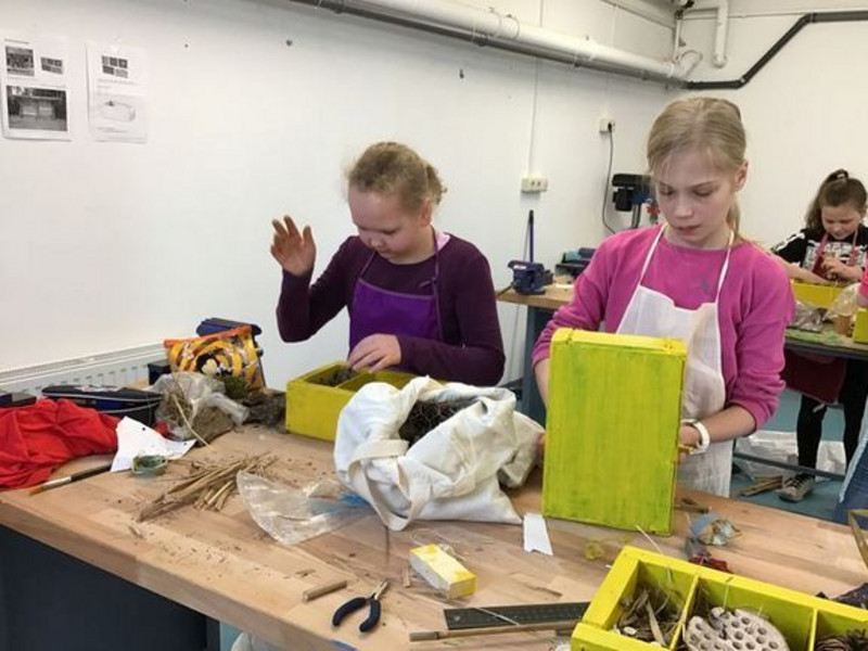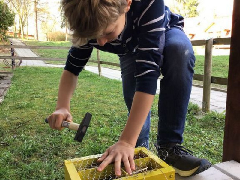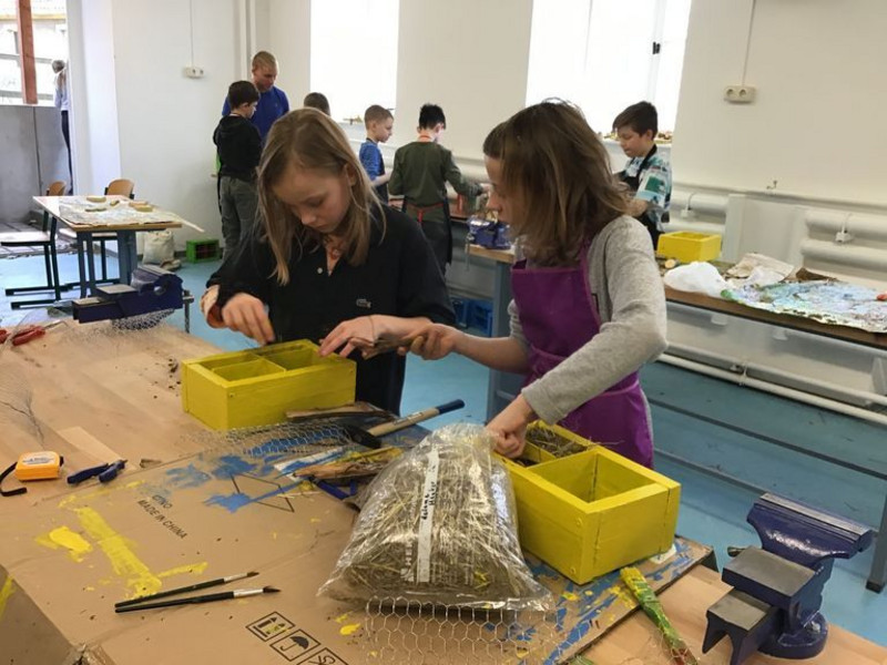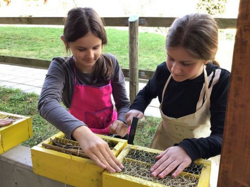 Die Schüler und Schülerinnen der 5. Klassen bauen in diesem Schuljahr ein Insektenhotel. Dieses soll nützliche Insekten beim Nisten und Überwintern unterstützen und ist damit ein Beitrag zum Arten- und Umweltschutz.