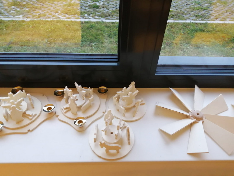 Das verlangt den Schülern einiges an technischen und handwerklichen Fähigkeiten ab: Sie müssen alle Bauteile von der Vorlage auf das Holz übertragen, sorgfältig mittels der Laubsäge aussägen, die Teile bohren und glattschleifen und anschließend aufkleben. So soll beispielsweise das Flügelrad aus acht exakt gleich großen Flügeln bestehen.