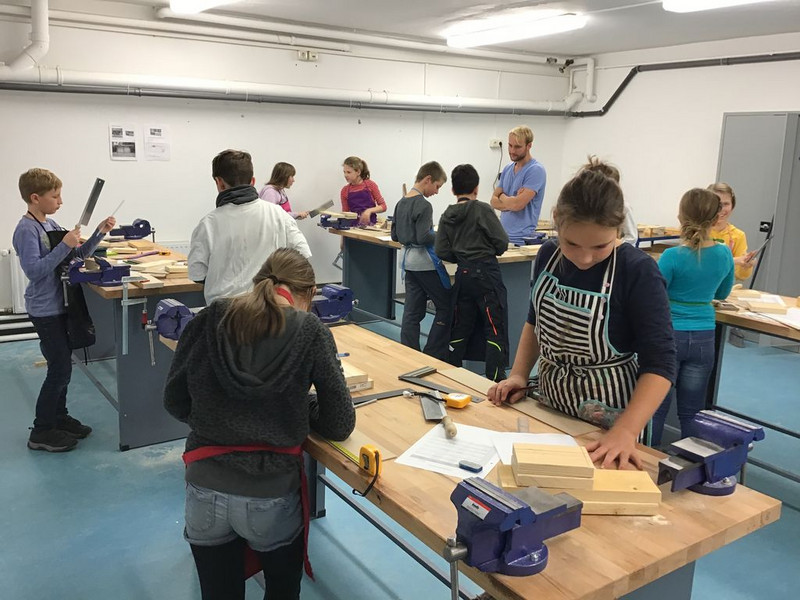 Nach Vermittlung von Kenntnissen zum Werkstoff Holz und seiner Bearbeitung wird dieses aus einem Bausatz hergestellt. Hierbei wenden die Schüler auch ihr Wissen zum Lesen technischer Zeichnungen an und setzen die Arbeitsanleitung Schritt für Schritt um.