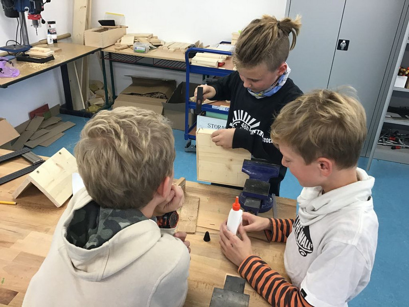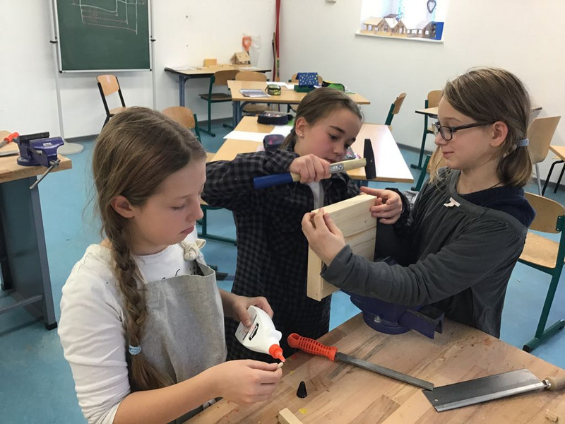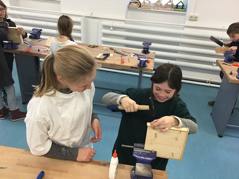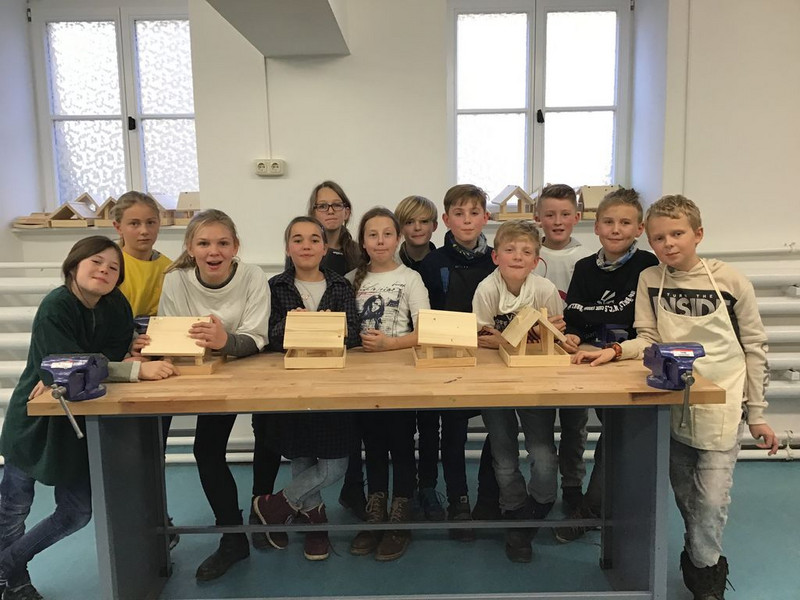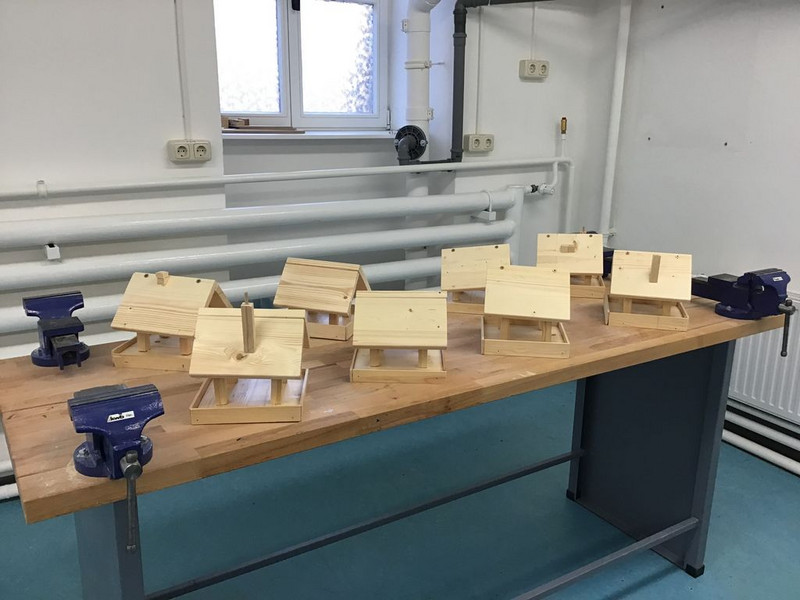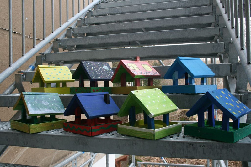 Mit dem BAU von insgesamt 18 FUTTERHÄUSCHEN leisteten unsere Schüler einen farbenfrohen und konkreten Beitrag zum Schutz der in Deutschland überwinternden Vögel. Dazu erarbeitete kreative Informationstafeln "Richtig Füttern" und jede Menge selbstgemachtes Vogelfutter rundeten die praktische Arbeit ab. Vielen Dank an alle Eltern, die dieses Projekt mit der Bereitstellung von Materialien unterstützt haben.