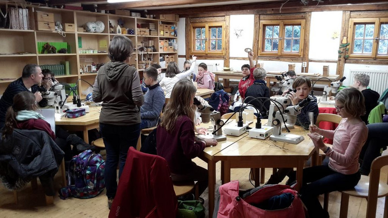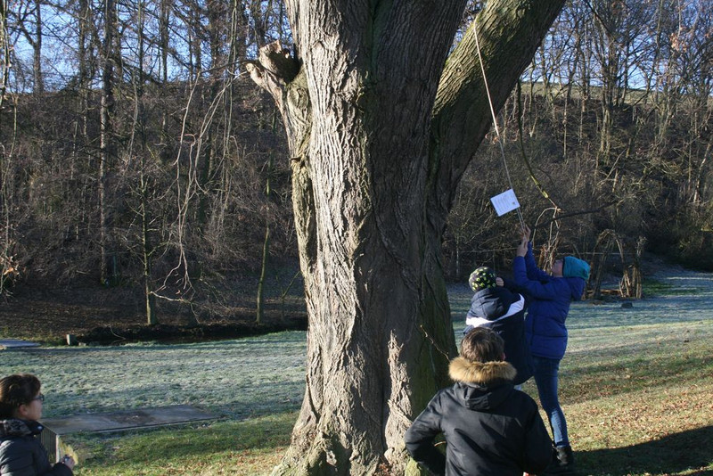 In der WaldErlebnisWerkstatt SYLVATIKON stand das Erkennen von blattlosen Bäumen und Sträuchern im Winter im Mittelpunkt. Typische Erkennungsmerkmale finden sich vor allem in den Knospen und diese wurden gründlich unter die Lupe genommen. Formen, Farben, Größe - jede Knospe verbirgt einen Schatz in ihrem Inneren, der bei der Identifizierung hilft. Zum Abschluss der fächerverbindenden Woche begaben sich kleine Gruppen an Wald, Teich und Wiese und dort auf die SUCHE nach den VERSTECKEN der EICHHÖRNCHEN. Auf ihrer Schatzsuche beantworteten sie knifflige Fragen zu den Gewohnheiten und der Ernährung der Eichhörnchen. Wissen wurde belohnt, Fehler führten zu recht lehrreichen Umwegen. "Am besten ging es mit Teamwork", eine Erkenntnis, die hoffentlich auch über die Themenwoche hinaus Bestand haben wird.