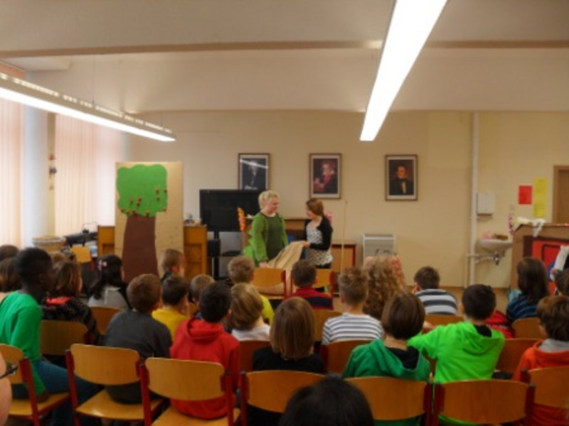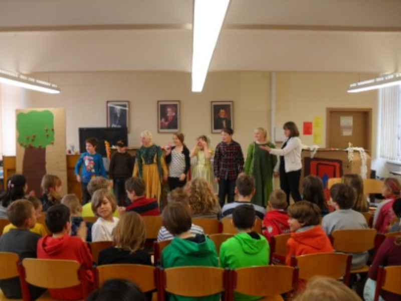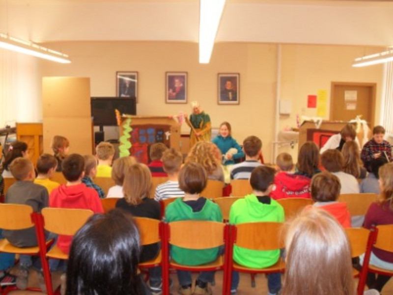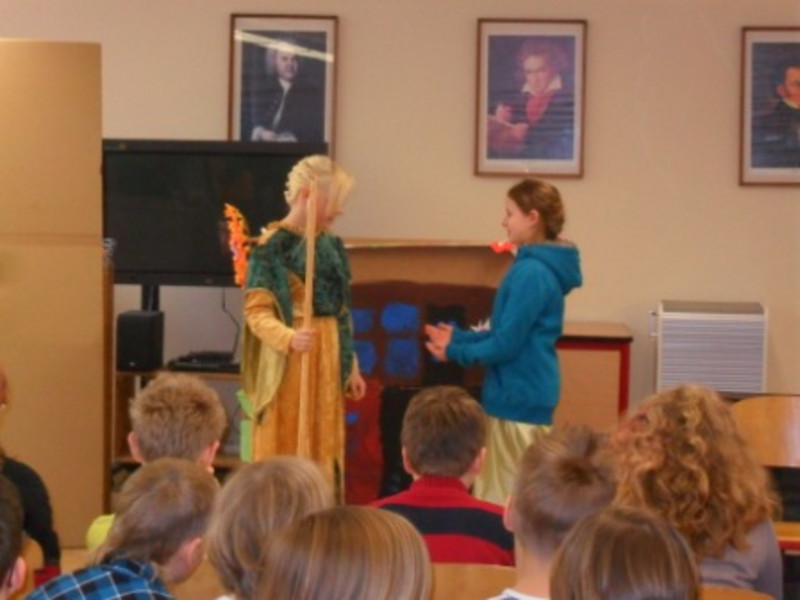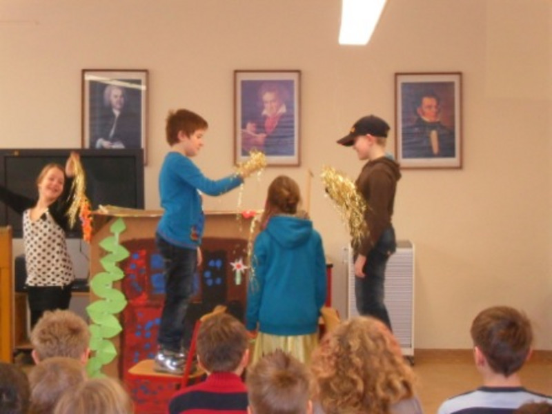 Während der ersten beiden Unterrichtsstunden zeigten sie ihr Theaterstück "Frau Holle" vor ihren Mitschülern der 1. bis 3. Klasse.