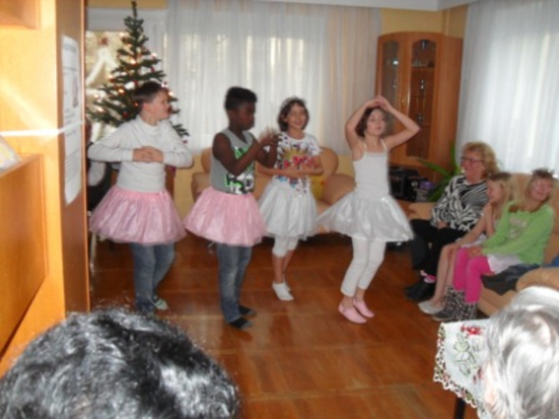 Am Dienstag, dem 17. Dezember 2013 waren unsere Programmkinder richtig in Aktion. Zuerst zeigten sie ihr flottes Programm Kindern, Eltern, Großeltern, Erziehern und Lehrern, welche am Tag des Weihnachtsmarktes keine Möglichkeit hatten, die Kinder zu bestaunen. Anschließend machten sich die Sänger und Tänzer auf den Weg zum Pflegedienst Geßner in der Yorckstraße. Hier konnten sie noch einmal zeigen, was sie im Ganztagsangebot bei Frau Bär, Herrn Schmidt und Frau Theil-Schulze gelernt haben. Ihre Lieder und Tänze wurden mit viel Beifall belohnt. Das habt ihr wirklich toll gemacht. Ein großes Lob und Dankeschön an alle und natürlich auch weiterhin viel Spaß beim Üben.