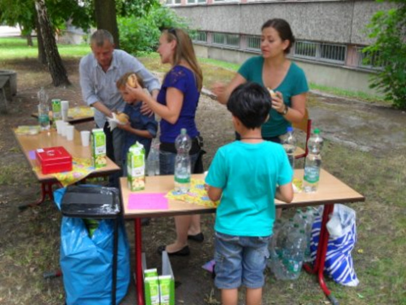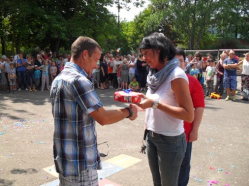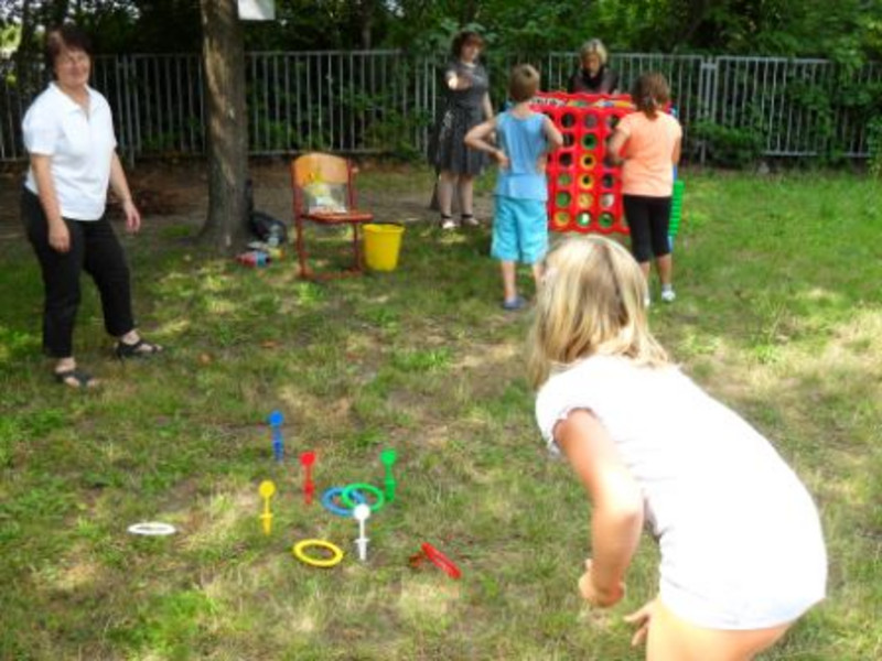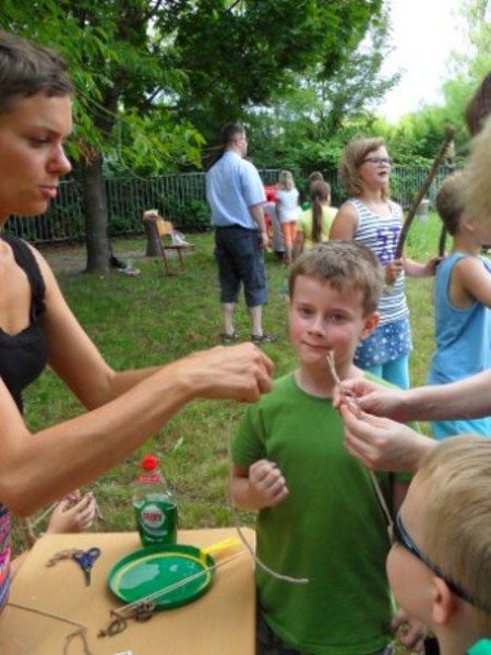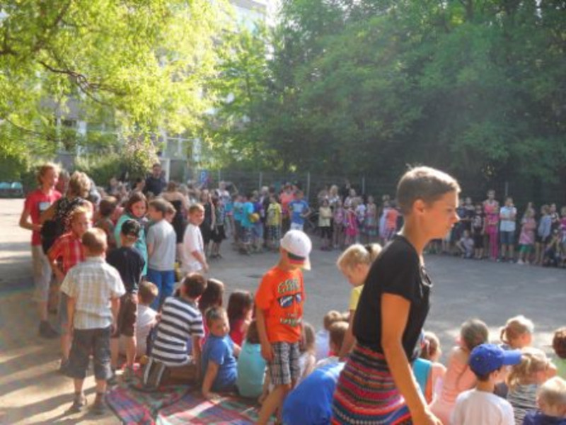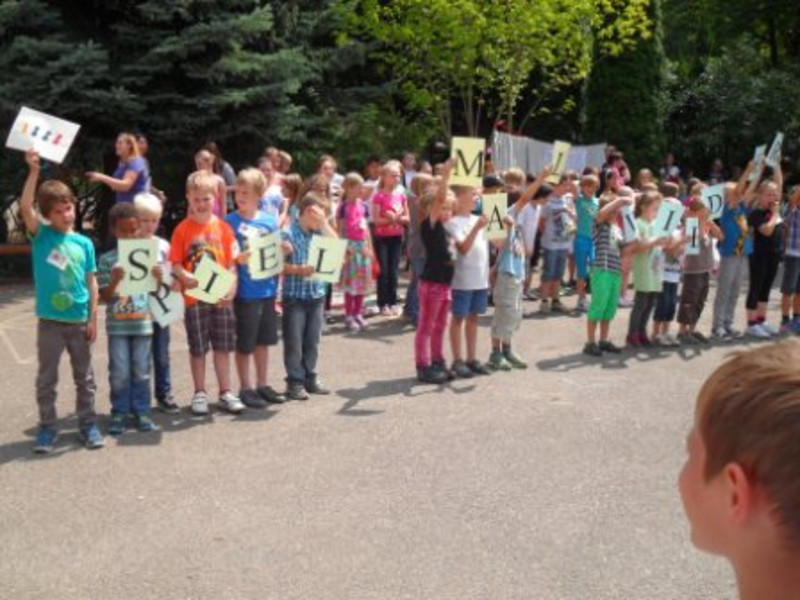 Am Freitag, dem 11.07.2014 trafen wir uns zum alljährlichen Schulfest. Durch die Baumaßnahmen in Turnhalle und Schulgebäude waren wir auf schönes Wetter und die Nutzung unseres Schulhofes und Hortgartens angewiesen. Dies war jedoch für die angedachten Spiele wie geschaffen. In der vorangegangenen Projektwoche hatten wir uns Spiele erarbeitet, welche wir allein, mit Freunden oder Eltern spielen konnten.