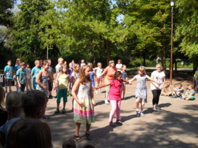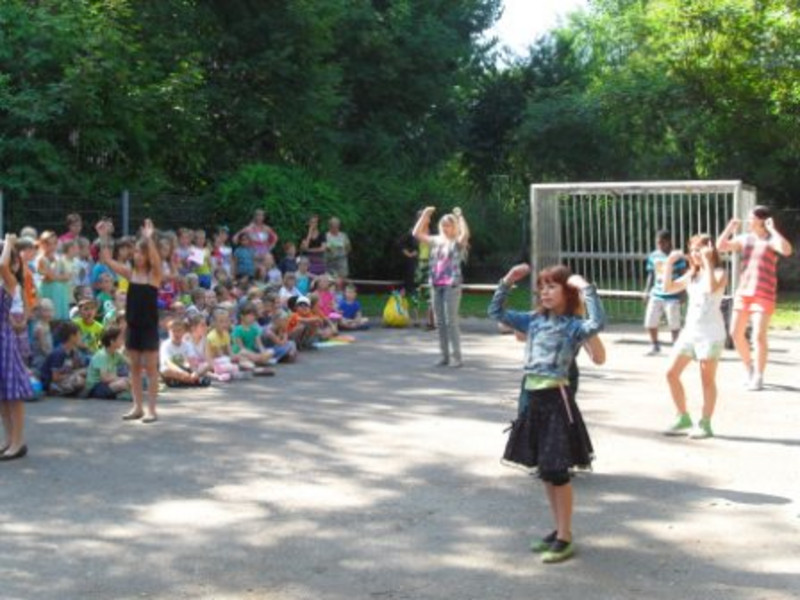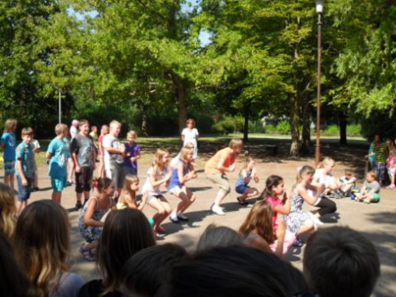 Nach einer feierlichen Eröffnung durch unsere Schulleiterin Frau Theil-Schulze begrüßten auch unsere Kinder alle Gäste. Kinder des Hortes unserer Schule zeigten ein kleines Programm. Vor allem jedoch die Tanzkinder des Ganztagsangebotes von Frau Bär zeigten stimmungsvoll und schwungvoll ihre Tänze und wurden mit Applaus belohnt.