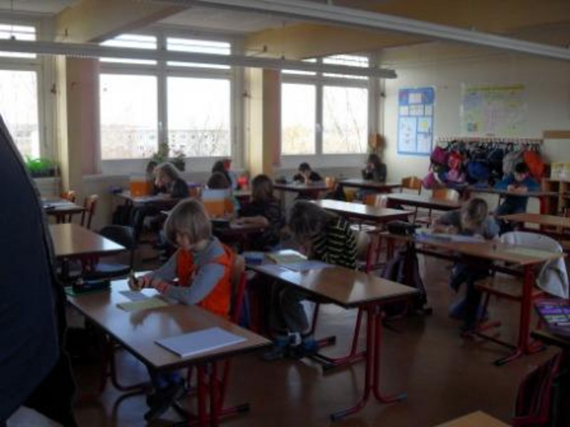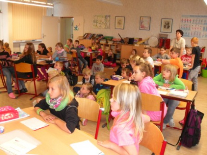 Unsere Schule beteiligte sich in Zusammenarbeit mit der Polizei an einer Blitz-Aktion im Straßenverkehr. An einer Stelle des Schulweges, wo Kinder unserer Schule häufig die Straße überqueren, wurde die Geschwindigkeit von Autos gemessen. Waren die Fahrer der Autos zu schnell unterwegs, so fragten Schüler der 3. Klasse nach den Gründen für zu schnelles Fahren und zeigten den Fahrern die gelbe Karte als Warnung. Häufiger kam es jedoch vor, dass Fahrer in angemessenem Tempo unterwegs waren. So zeigten die Kinder die grüne Karte und bedankten sich für die vorbildliche Fahrweise.