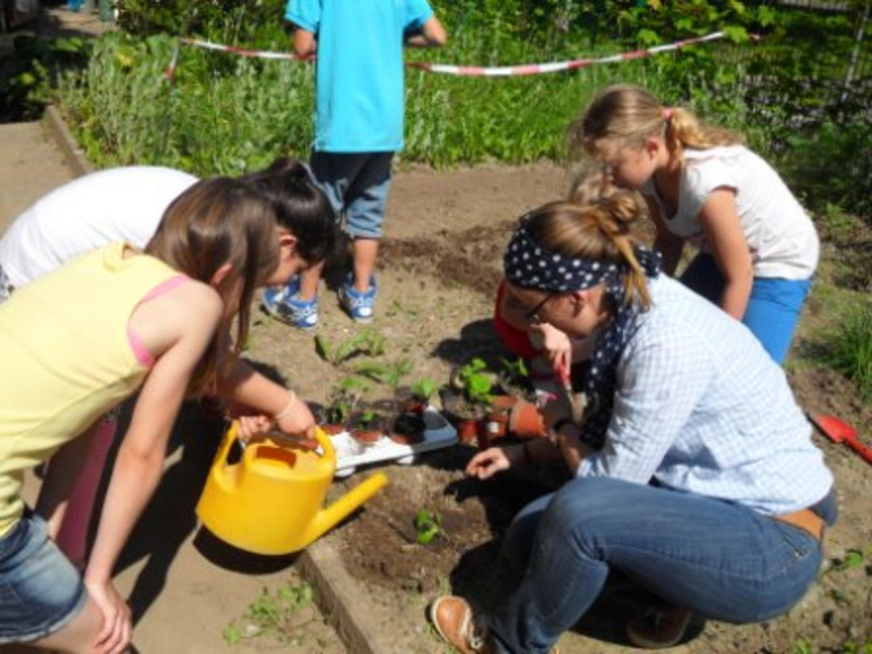 Unter Anleitung verschiedener Schulgartenlehrer wurden die von Familie Daßler zur Verfügung gestellten Pflanzen in die Erde gebracht.