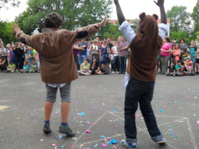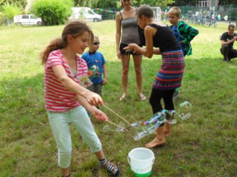 Nach einer Eröffnung durch unsere Schulleiterin Frau Theil-Schulze sowie den Tänzen unserer Tanzkinder ging es an die Stationen. Der Spaß war groß – ob an Hüpfburg, Turmbau, Schokokuss-Wurfmaschine, Riesenseifenblasen….oder, oder, oder. Auch für das leibliche Wohl war gesorgt! Aufkommende dunkle Wolken konnten uns nichts anhaben und so wurde es für alle ein schöner Tag.