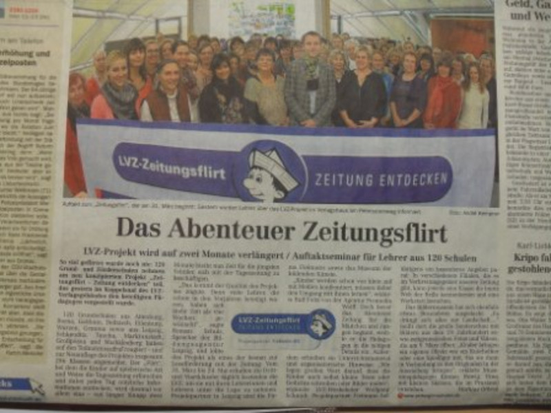 Schon einige Tage beteiligen sich die Schüler der 4. Klassen an der "Zeitungsflirt" - Aktion der LVZ und lesen fleißig in der Zeitung. Viel erfuhren sie inzwischen über dieses Medium und finden sich auch in der Zeitung schon gut zurecht.