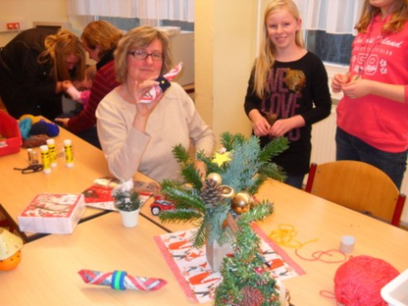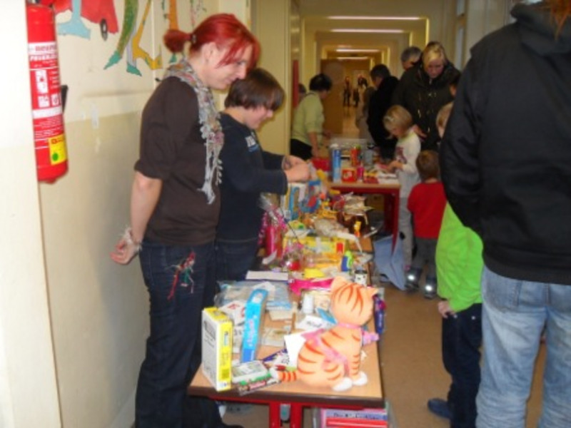 Danach öffneten sich für alle die Türen zu unseren Weihnachtsstübchen in der 1. Etage. Hier konnte nach Herzenslust gebastelt, gemalt, gestaltet, gerätselt und gespielt werden. Auch auf dem Flohmarkt bot sich Gelegenheit, die eine oder andere Kleinigkeit zu erwerben. Wer sich ein wenig mehr Ruhe wünschte, dürfte beim Lauschen von Frau Haferkorns Geschichten genau das Richtige gefunden haben. Für das leibliche Wohl unserer Besucher bot ein Café oder auch der Bratwurst- sowie Getränkestand vielfältige Möglichkeiten.