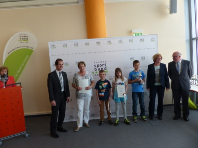 Am Dienstag, dem 29. April 2014 fuhr eine kleine Delegation unserer Schule zur Auszeichnungsveranstaltung für die Teilnahme am Sportabzeichen - Wettbewerb des Landessportbundes Sachsen. Die Mühe und Anstrengung haben sich gelohnt. Frau Roßberg und die 3 Schüler konnten aus den Händen von Ulf Tippelt - Vorsitzender des Landessportbundes Sachsen - die Glückwünsche und die Anerkennung für einen tollen 3. Platz in Empfang nehmen. Im Anschluss erlebten alle Teilnehmer eine Besichtigung des Dresdner Flughafens.