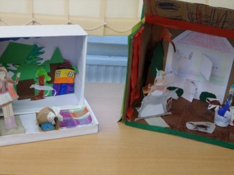 Während dieser Woche entstanden sehr unterschiedliche Präsentationen in Form von Leserollen, Lesetagebüchern, Leporellos, selbst gestaltete Büchern, Märchenkisten, Bastelfiguren, Musikstücken... u.v.m.