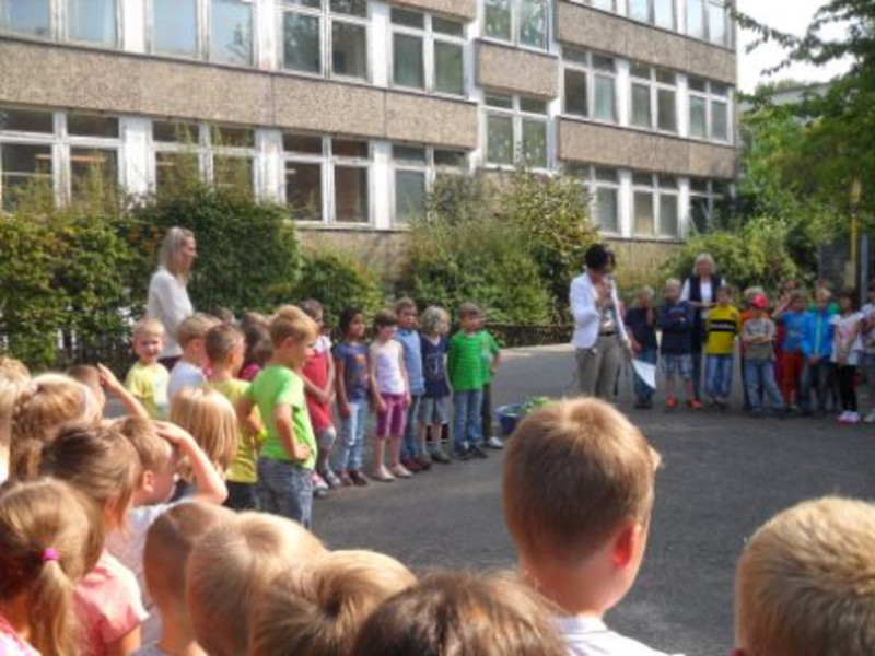 Am Samstag, dem 30. August 2014 wurden in drei Feierstunden die erwartungsvollen Schülerinnen und Schüler der neuen 1. Klassen auf das Herzlichste begrüßt. Einige Kinder der 4. Klassen hießen ihre neuen Mitschüler mit einem stimmungsvollen Programm willkommen. Von unserer Rektorin Frau Theil-Schulze wurden die Schulanfänger mit feierlichen Worten im Beisein von Eltern, Großeltern, Bekannten und Verwandten in unserer Schule aufgenommen.
