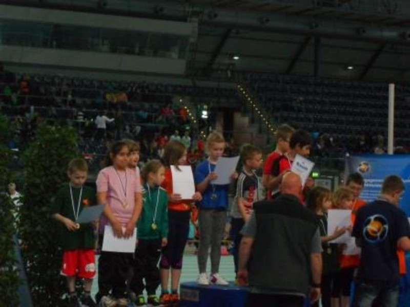 Ein großartiges Erlebnis für die Schüler vor Publikum in einer gut gefüllten Arena zu laufen und auf dem Siegerpodest zu stehen. Jeder Teilnehmer wurde mit einer Medaille und einer Urkunde geehrt.