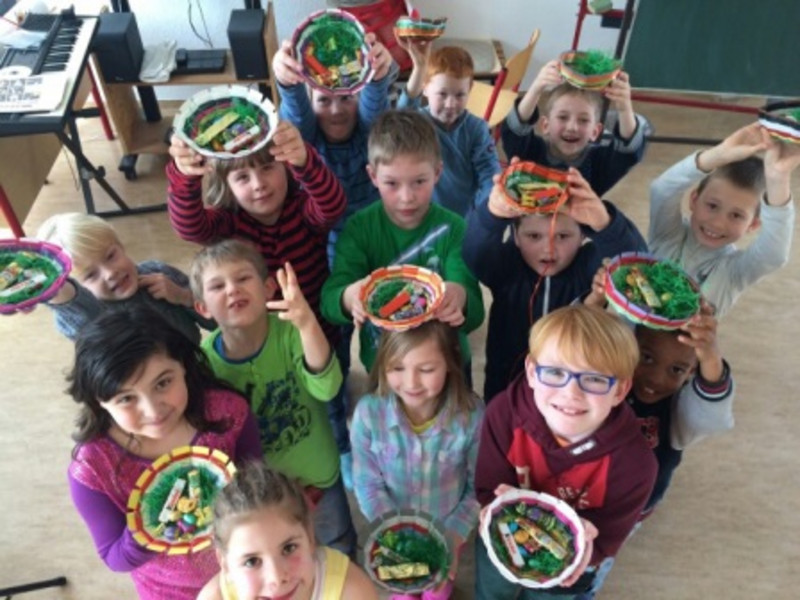 Am heutigen Osterprojekttag war in allen Klassen viel los. Ob in einer Osterwerkstatt gelernt, gebastelt oder gespielt wurde oder ein gemeinsames, gutes Frühstück stattfand, alle Kinder waren mit Eifer bei der Sache. Besonders groß war der Jubel, wenn die vom Osterhasen gefüllten und versteckten, selbst gebastelten Osterkörbchen endlich gefunden wurden.