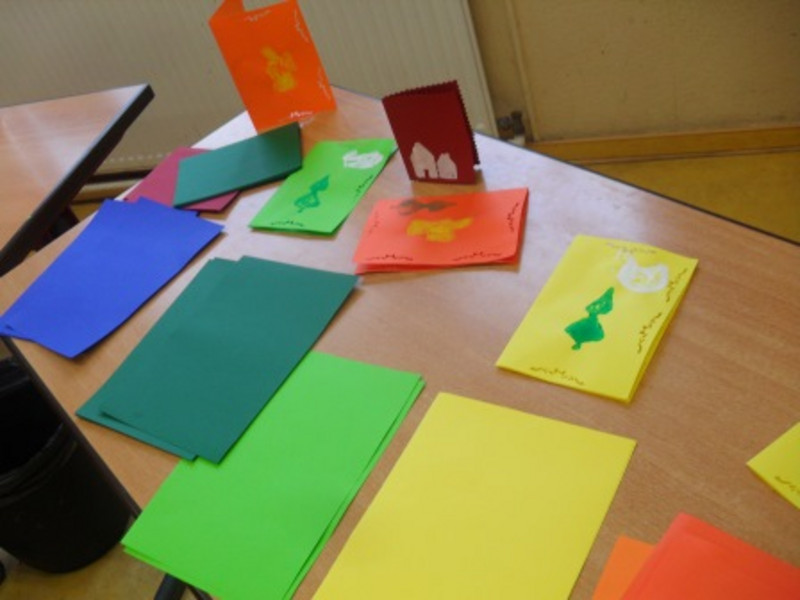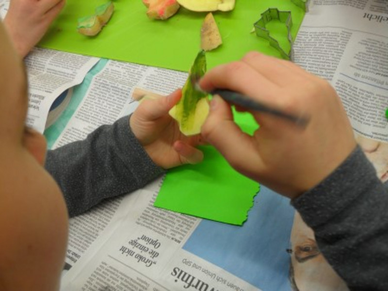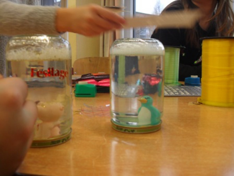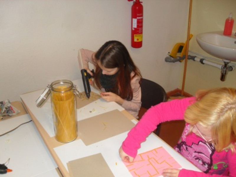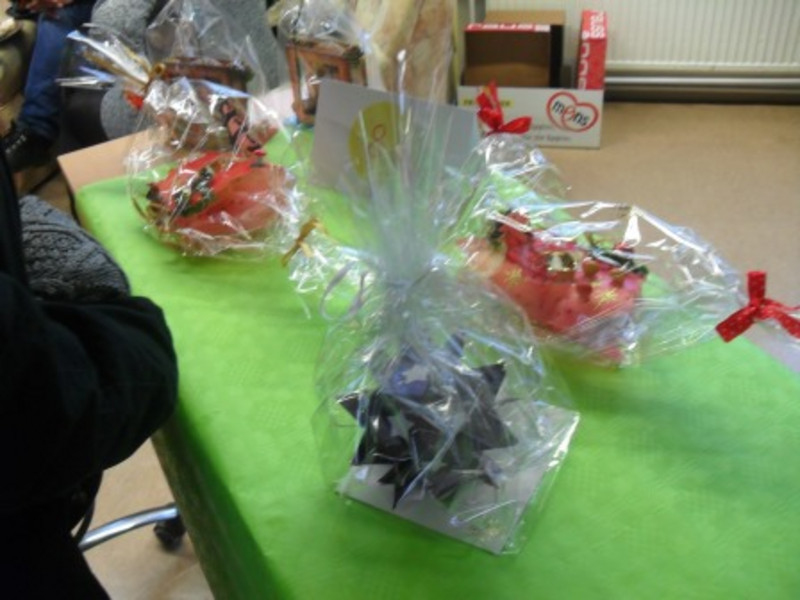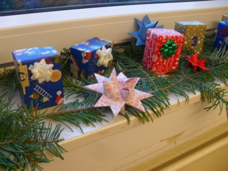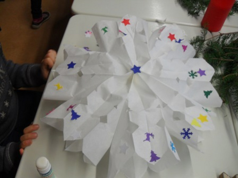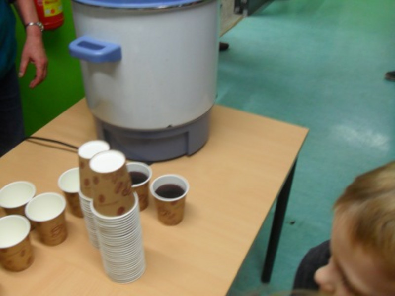 Bei Bratwurst, Glühwein und Kinderpunsch oder im Café konnte man sich stärken. Auf dem vom Kinderrat und Frau Kruse organisierten Flohmarkt gab es für kleines Geld das eine oder andere Geschenk zu kaufen. Mit Geduld und Geschick konnte man jedoch auch an vielen verschiedenen Stellen kleine Kostbarkeiten selbst herstellen. Ob Gestecke, Holzhäuschen, Weihnachssterne aus Butterbrotpapier, Baumschmuck aus Salzteig, Schneekugeln etc. konnten auch Weihnachtsgrußkarten mit Kartoffeldruck gestaltet werden.