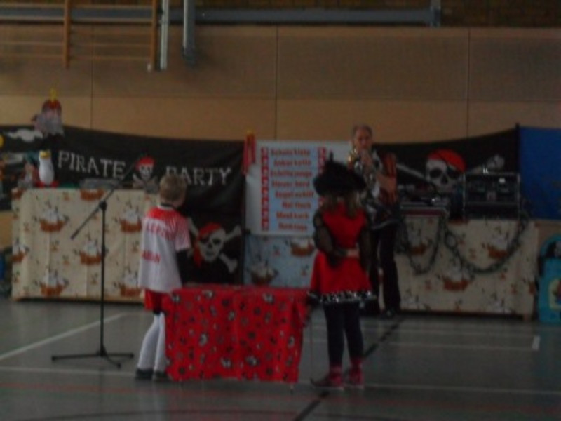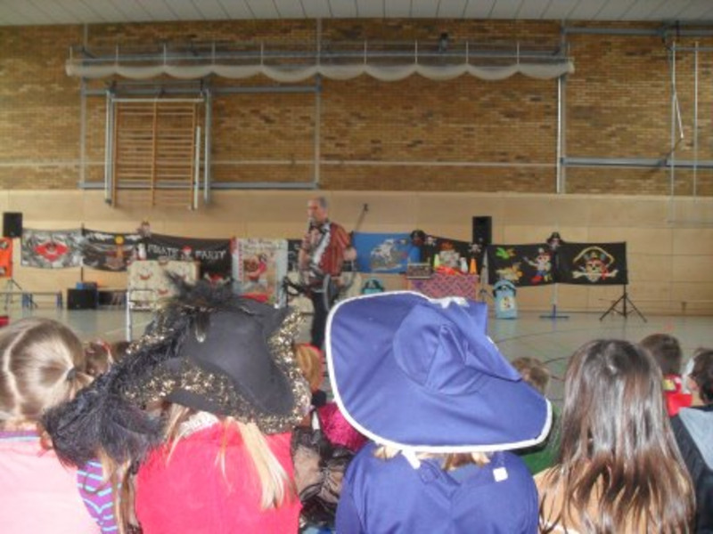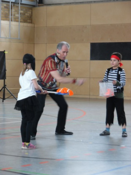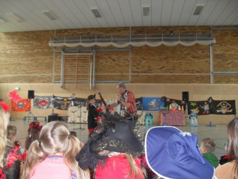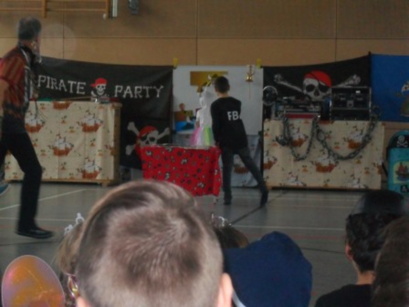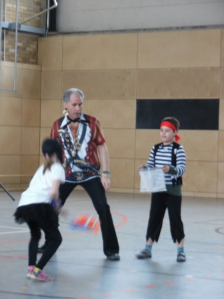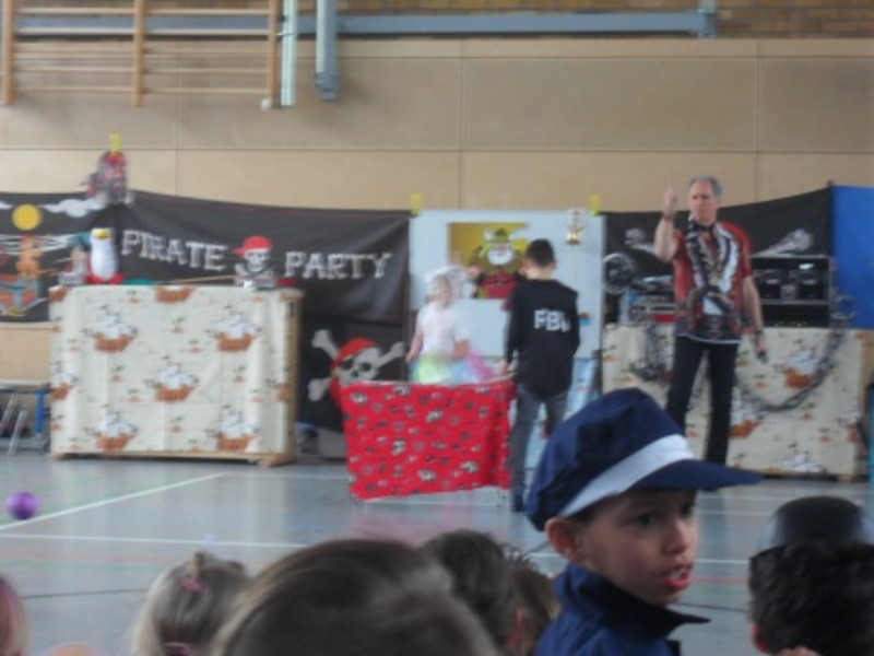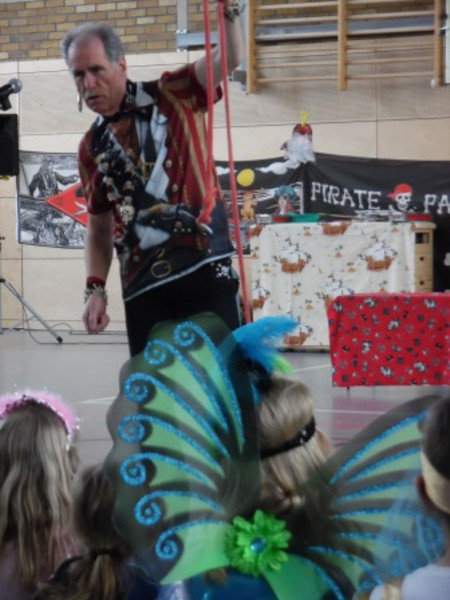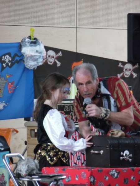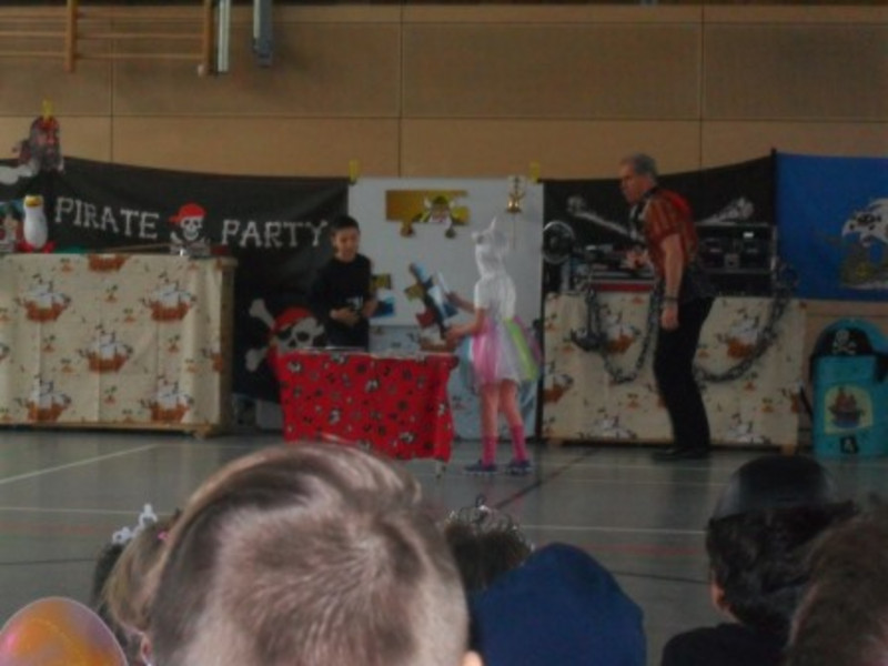 Diese konnten entweder an verschiedenen Stationen spielen, basteln, essen, tanzen, ... und mit Andy bei einem wunderbaren "Piraten"-Programm in der Turnhalle viel Spaß haben.