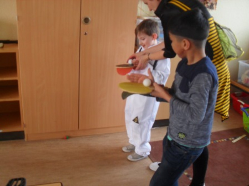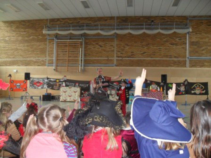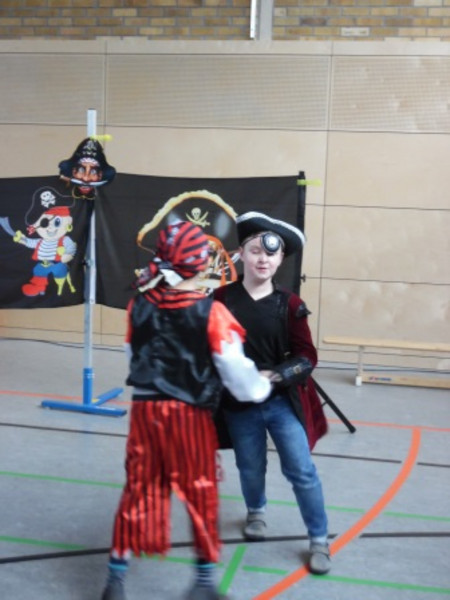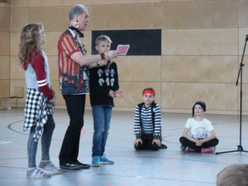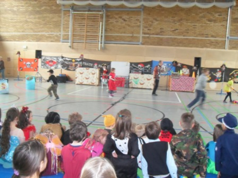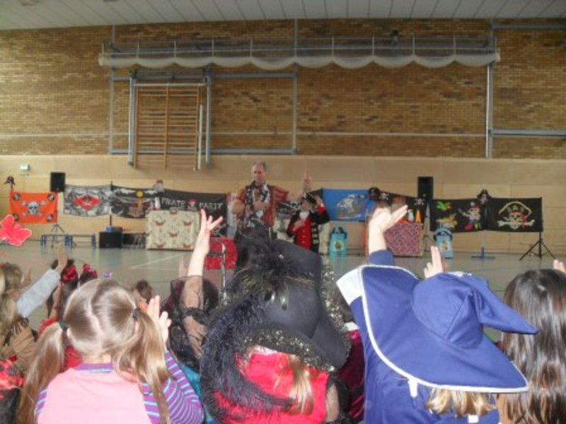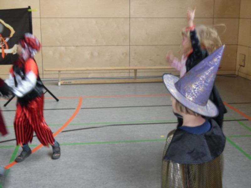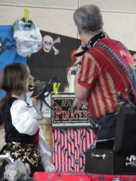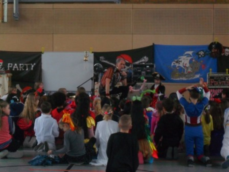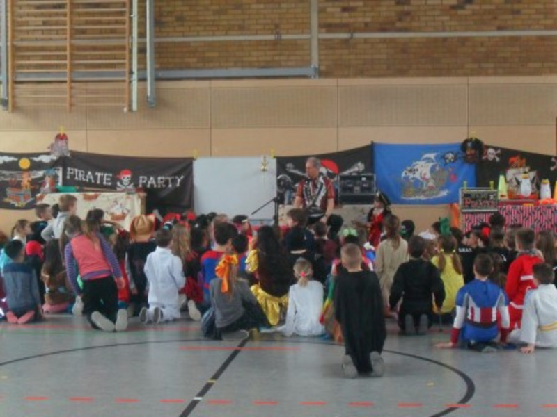 Diese konnten entweder an verschiedenen Stationen spielen, basteln, essen, tanzen, ... und mit Andy bei einem wunderbaren "Piraten"-Programm in der Turnhalle viel Spaß haben.