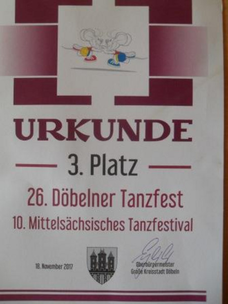 Pauline Schmieder die Tanzkinder bei einem Wettkampf in Döbeln und konnten sich hier in einem großen Teilnehmerfeld den 3. Platz ertanzen. Dazu unseren herzlichen Glückwunsch!