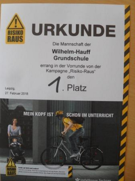 Eine Sportlerauswahl bestehend aus Schülern der Klassen 2 bis 4 vertraten unsere Schule am Dienstag, dem 27.02.2018 sehr erfolgreich beim Wettbewerb "Risiko raus", welcher in der Sporthalle der 90. Grundschule in Leipzig ausgetragen wurde.
