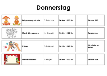 Die Kinder bekommen einen Laufzettel und besuchen eigenständig die einzelnen Angebote. Im Anschluss können sich die Kinder gemeinsam mit den Eltern für maximal 2 Angebote anmelden.